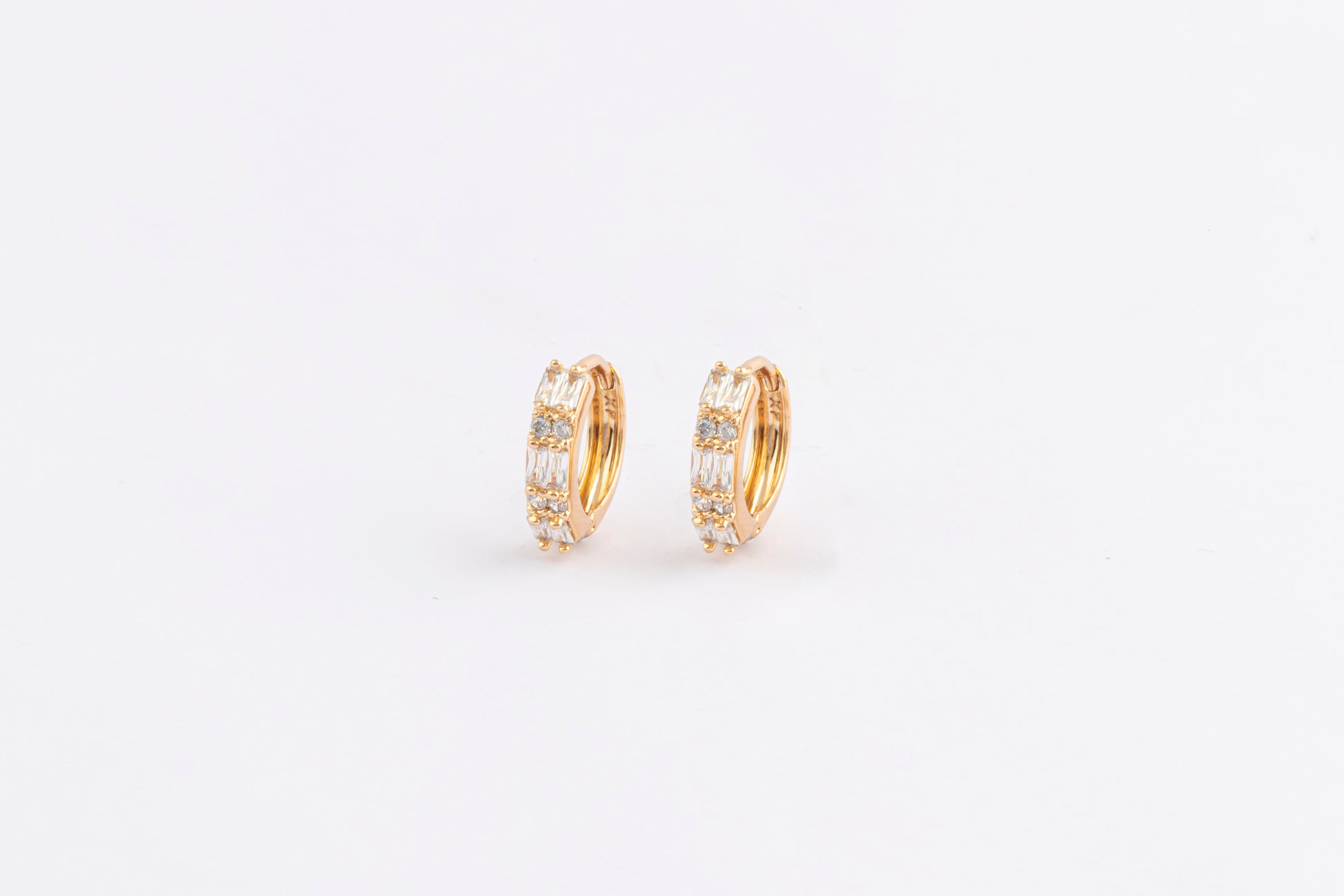 Arracadas doradas con cristales finamente alineados que dan un brillo elegante y sutil. Un básico atemporal para usar todos los días y combinar con cualquier look. ✨💛