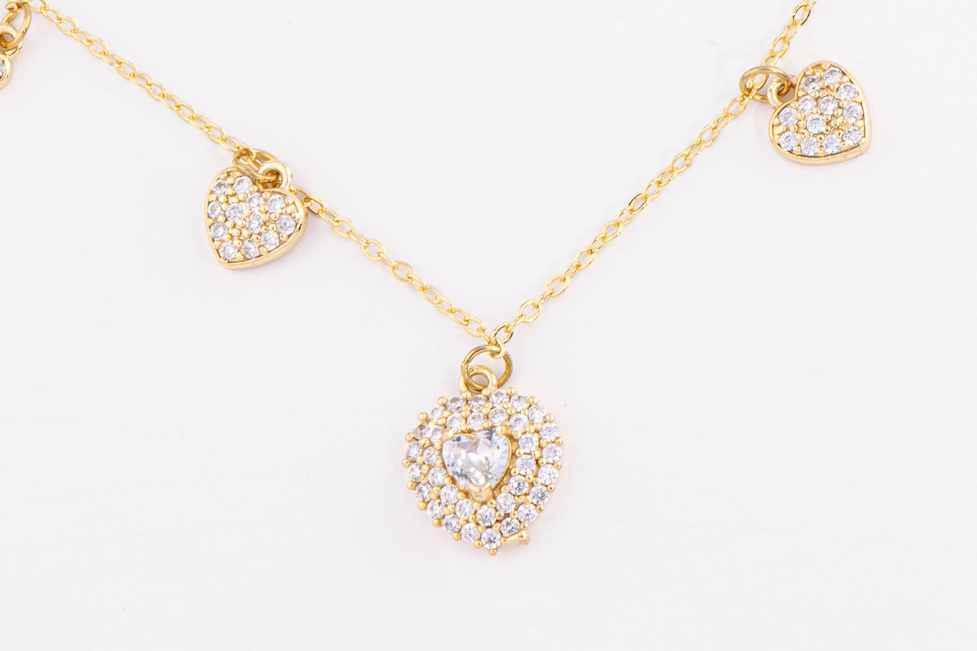 Este collar dorado con cristales incrustados ilumina cualquier look con su estilo divertido y glamuroso. Perfecto para combinar con cadenas delicadas o usarlo solo como protagonista.