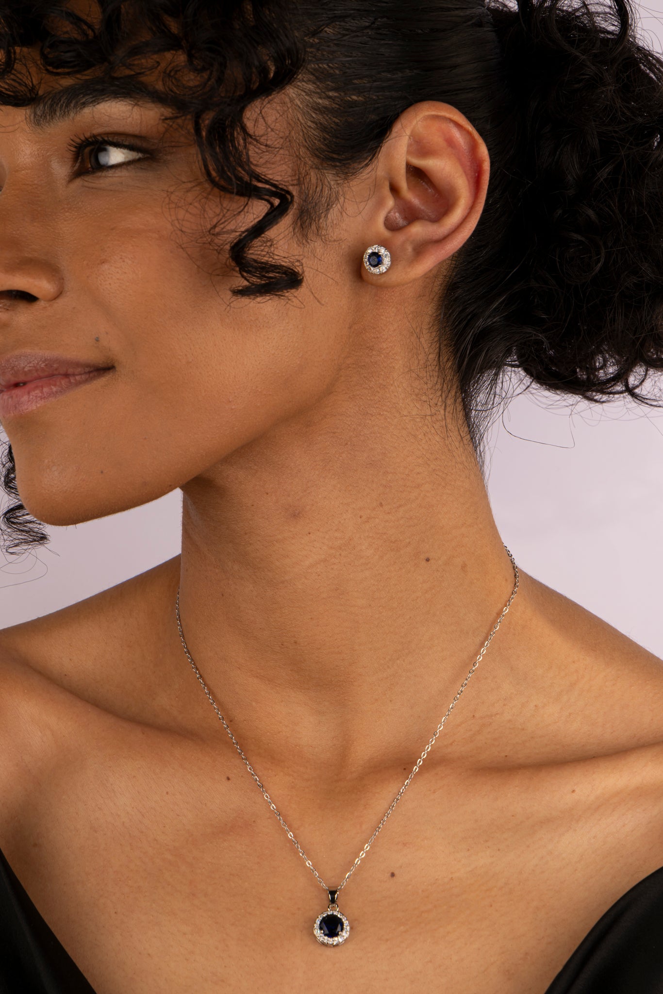 Este set incluye un collar y aretes con piedras negras enmarcadas por destellos plateados, creando un contraste moderno y poderoso.