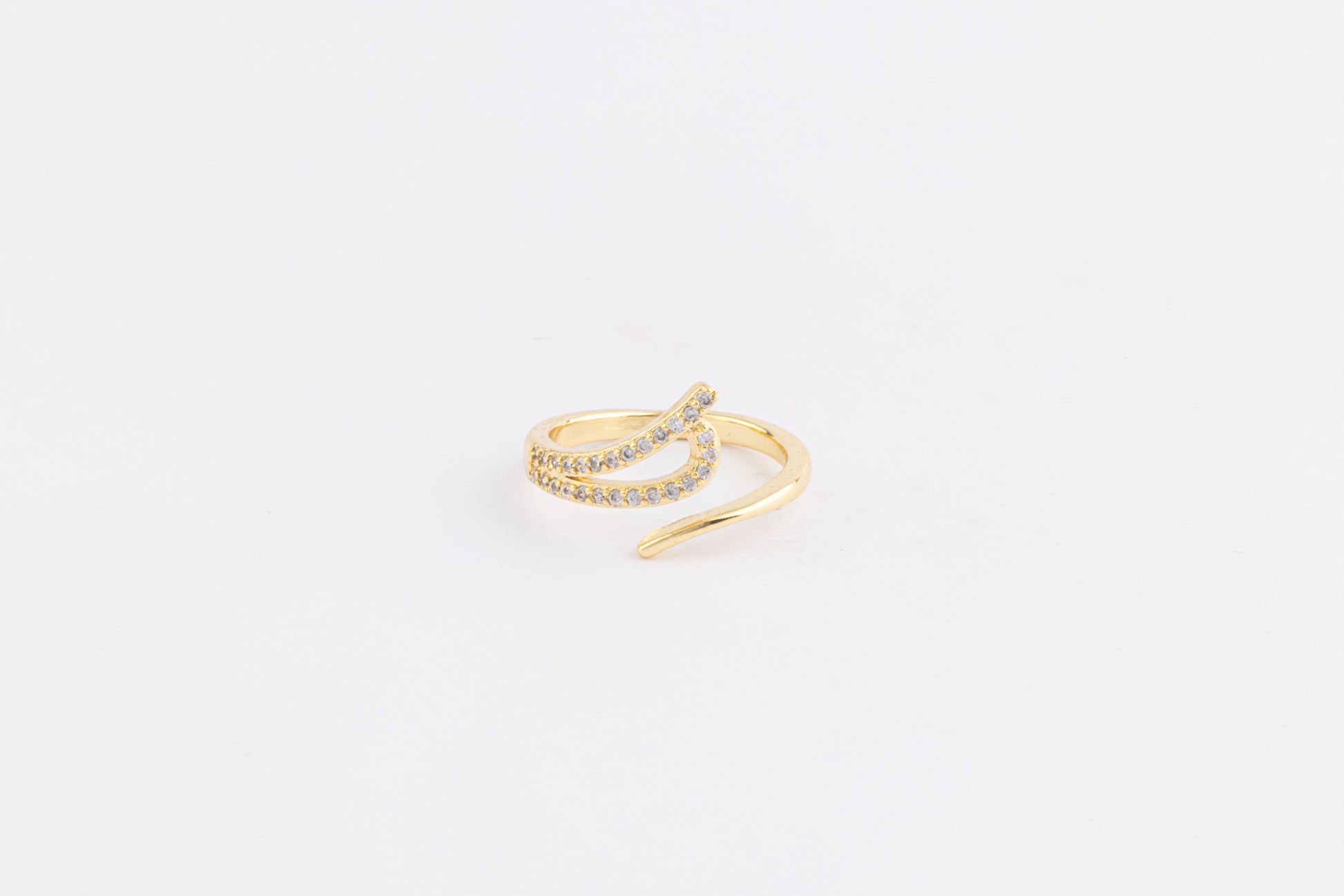 Anillo ajustable en tono dorado con un diseño en espiral que abraza delicadamente el dedo. Su forma curva, decorada con cristales brillantes, crea un efecto elegante y moderno, ideal para quienes buscan una pieza versátil que combine sofisticación y actitud.